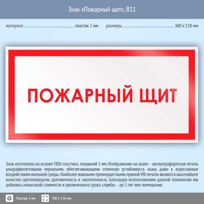 Знак «Пожарный щит», B11 (пластик, 300х150 мм) в Кызыле купить
