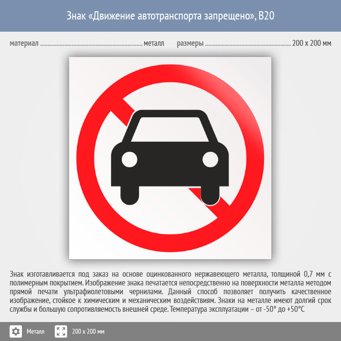 Знак «Движение автотранспорта запрещено», B20 (металл, 200х200 мм) в Кызыле купить