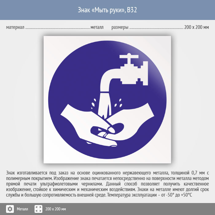 Знак «Мыть руки», B32 (металл, 200х200 мм) в Кызыле купить