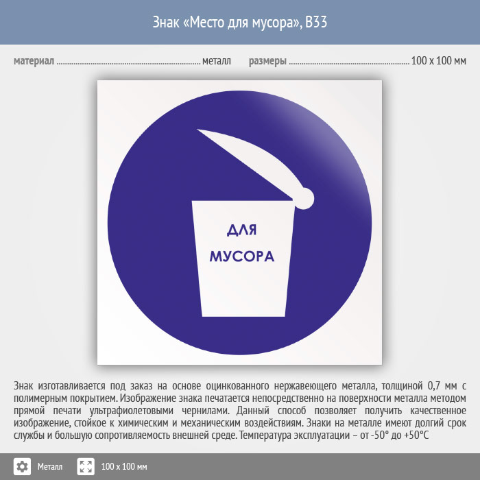 Знак «Место для мусора», B33 (металл, 100х100 мм) в Кызыле купить