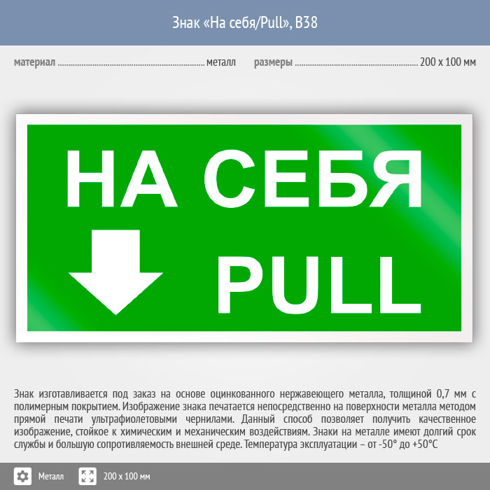Знак «На себя/Pull», B38 (металл, 200х100 мм) в Кызыле купить