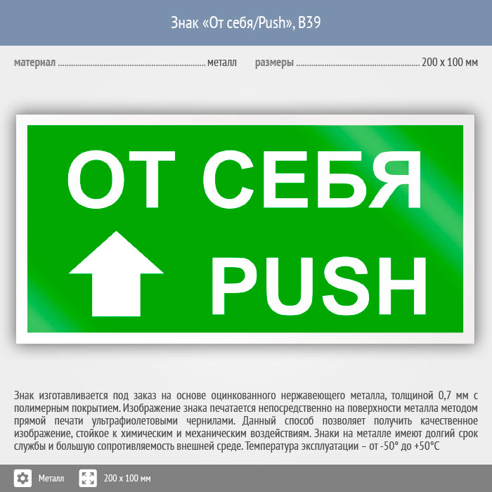 Знак «От себя/Push», B39 (металл, 200х100 мм) в Кызыле купить
