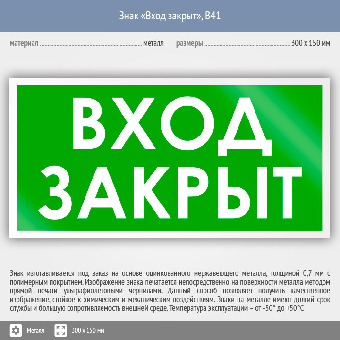 Знак «Вход закрыт», B41 (металл, 300х150 мм) в Кызыле купить