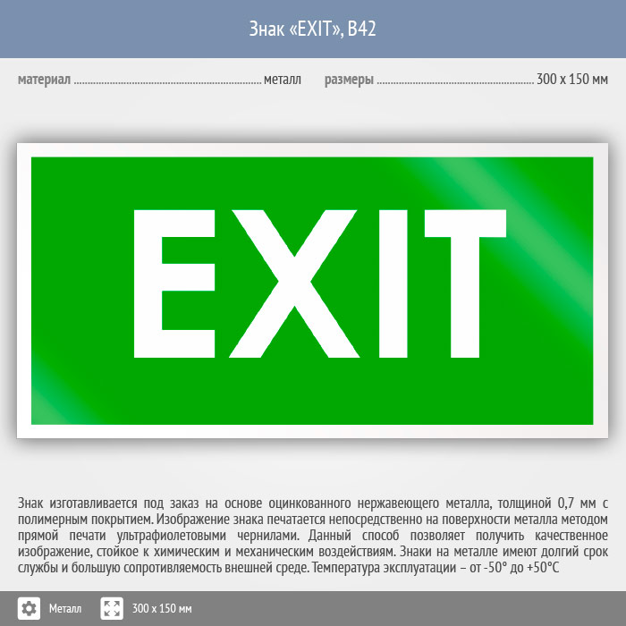 Знак «EXIT», B42 (металл, 300х150 мм) в Кызыле купить