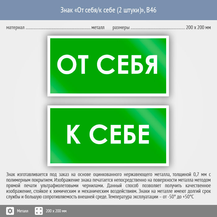 Знак «От себя/к себе», B46 (2 штуки, металл, 200х100 мм) в Кызыле купить
