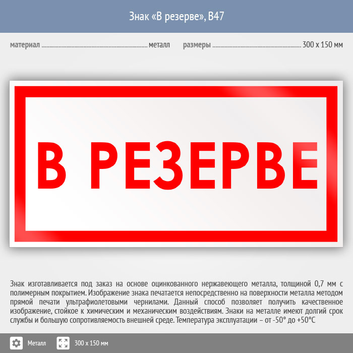 Знак «В резерве», B47 (металл, 300х150 мм) в Кызыле купить