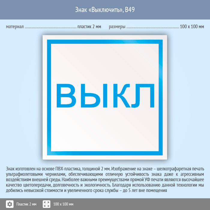 Знак «Выключить», B49 (пластик, 100х100 мм) в Кызыле купить