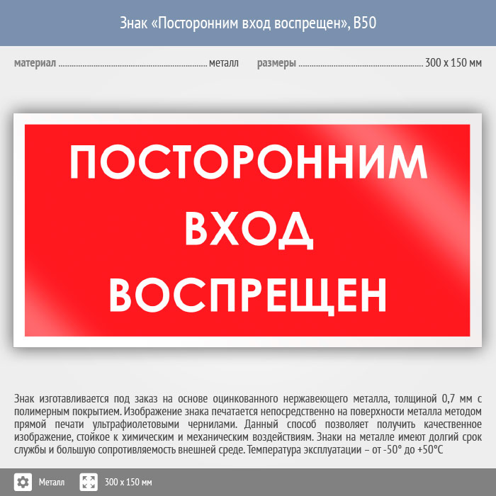 Знак «Посторонним вход воспрещен», B50 (металл, 300х150 мм) в Кызыле купить