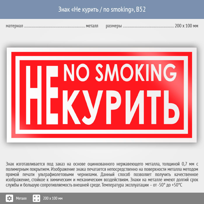 Знак «Не курить / no smoking», B52 (металл, 200х100 мм) в Кызыле купить
