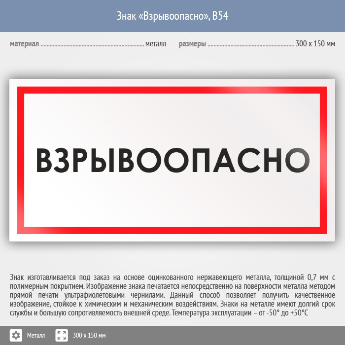 Знак «Взрывоопасно», B54 (металл, 300х150 мм) в Кызыле купить