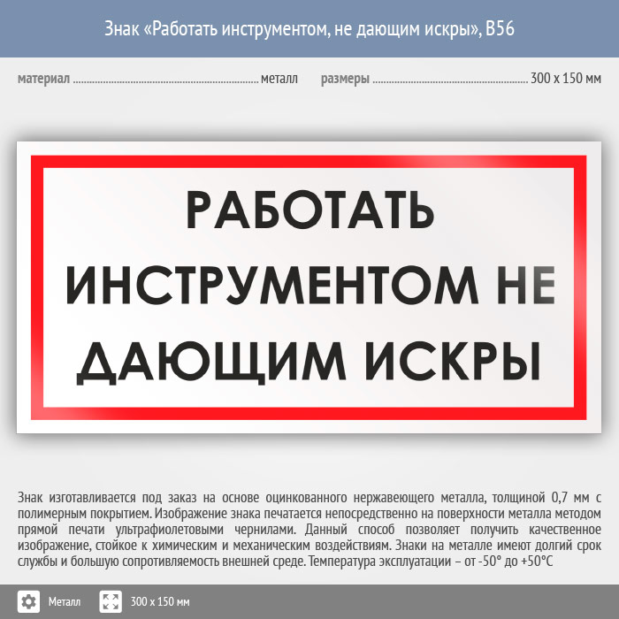 Знак «Работать инструментом, не дающим искры», B56 (металл, 300х150 мм) в Кызыле купить