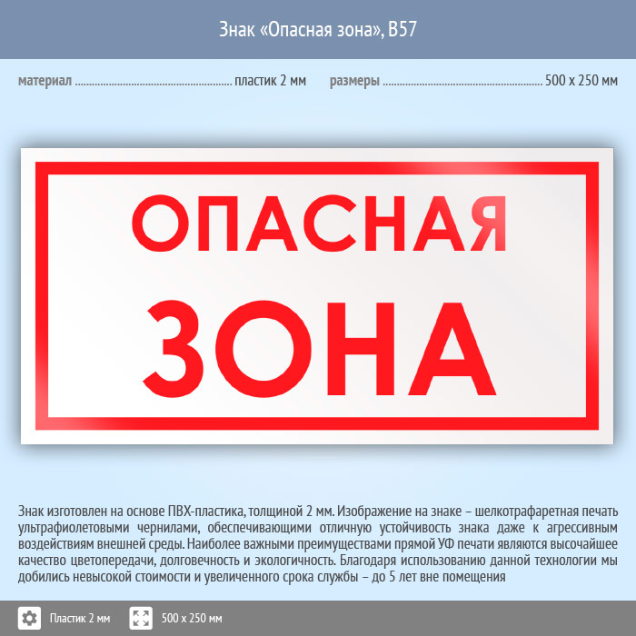 Знак «Опасная зона», B57 (пластик, 500х250 мм) в Кызыле купить