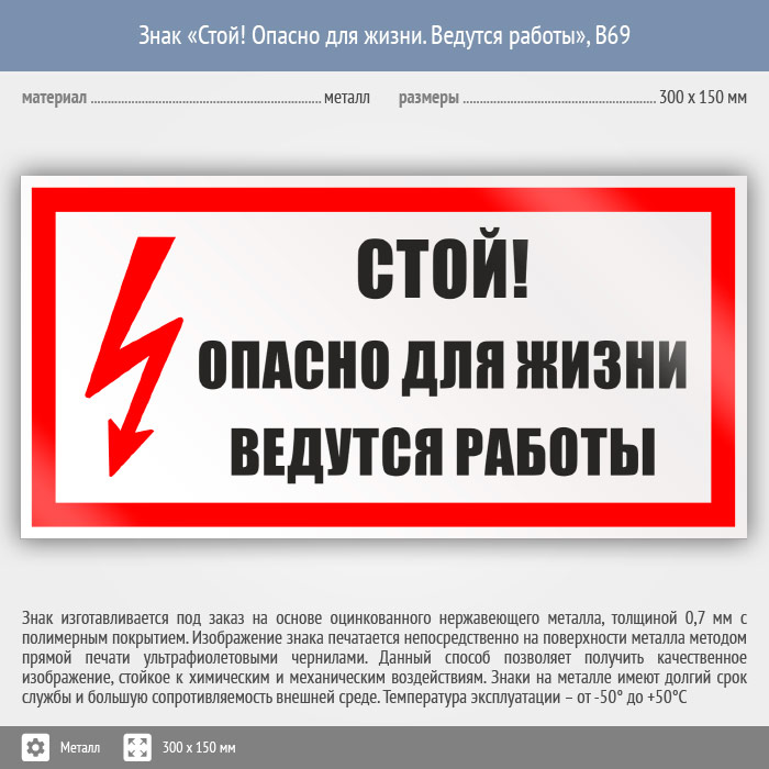 Знак «Стой! Опасно для жизни. Ведутся работы», B69 (металл, 300х150 мм) в Кызыле купить