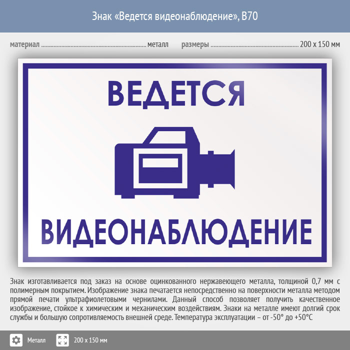 Знак «Ведется видеонаблюдение», B70 (металл, 200х150 мм) в Кызыле купить