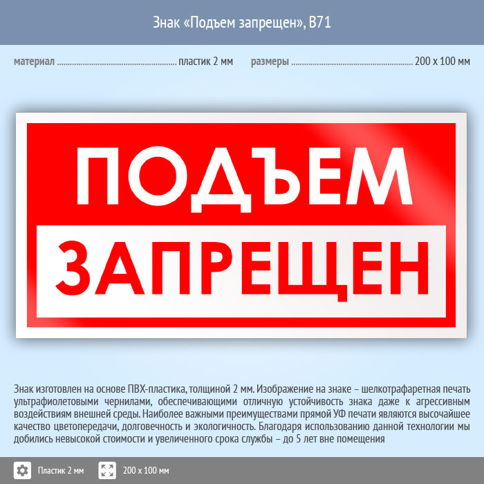 Знак «Подъем запрещен», B71 (пластик, 200х100 мм) в Кызыле купить