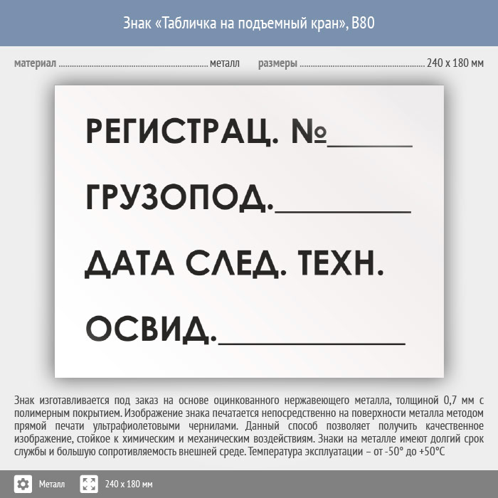 Знак «Табличка на подъемный кран», B80 (металл, 240х180 мм) в Кызыле купить