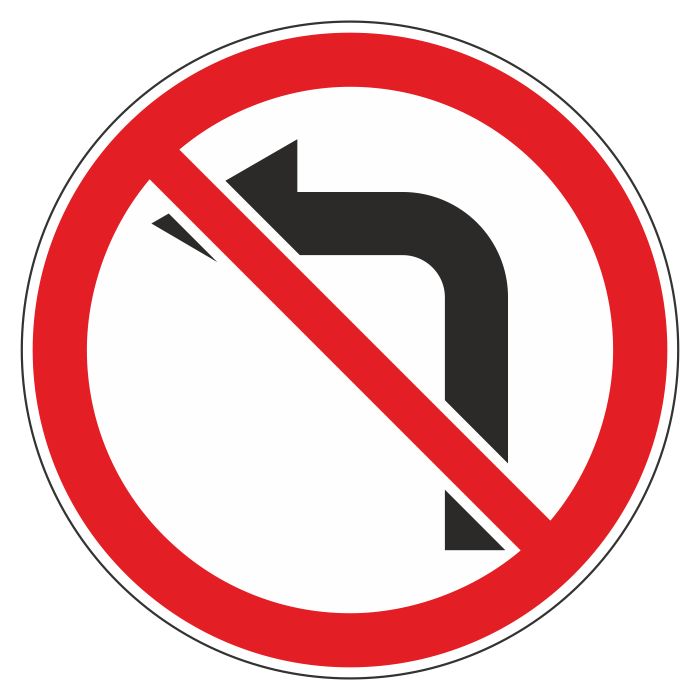 Дорожный знак 3.18.2 «Поворот налево запрещен» (металл 0,8 мм, III типоразмер: диаметр 900 мм, С/О пленка: тип А инженерная) в Кызыле купить