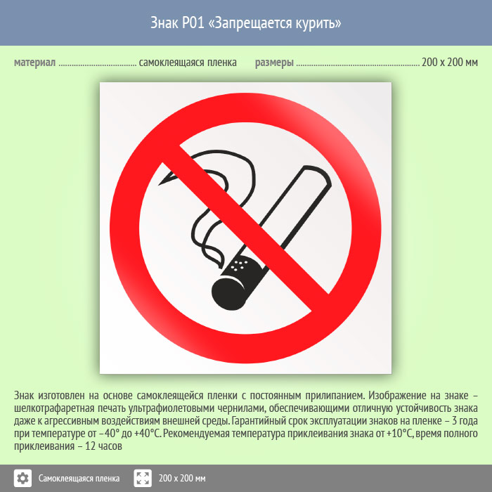 Знак P01 «Запрещается курить» (пленка, 200х200 мм) в Кызыле купить
