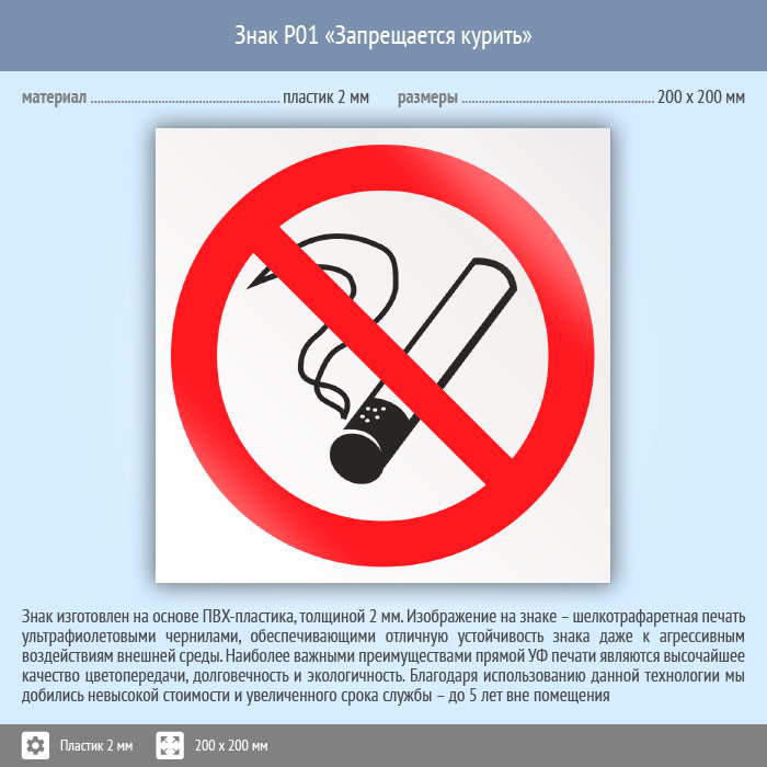 Знак P01 «Запрещается курить» (пластик, 200х200 мм) в Кызыле купить