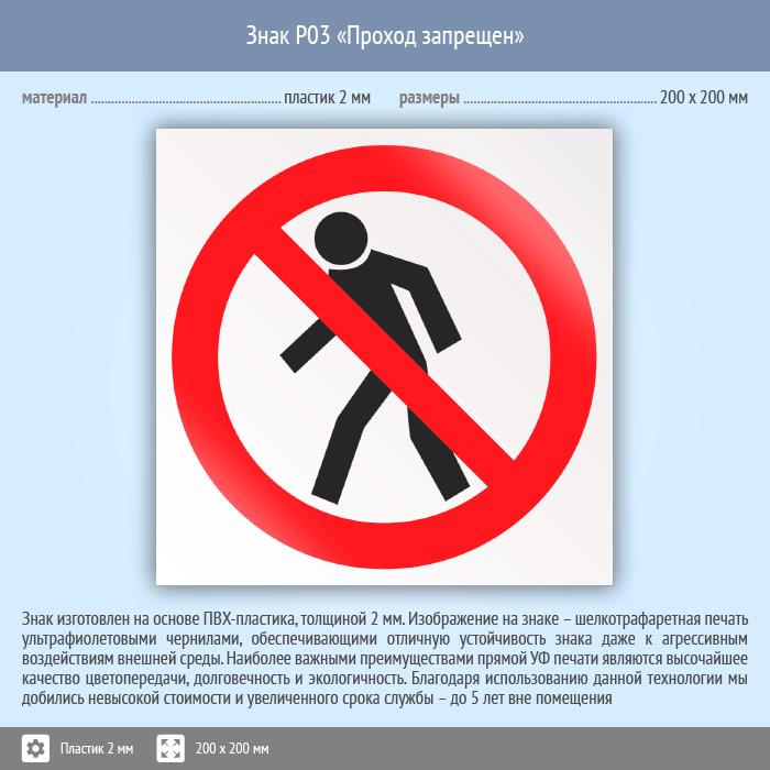 Знак P03 «Проход запрещен» (пластик, 200х200 мм) в Кызыле купить