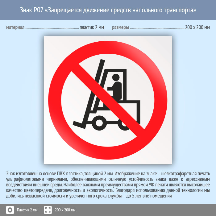 Знак P07 «Запрещается движение средств напольного транспорта» (пластик, 200х200 мм) в Кызыле купить