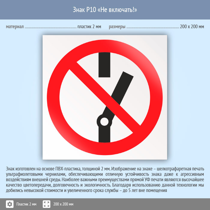 Знак P10 «Не включать!» (пластик, 200х200 мм) в Кызыле купить