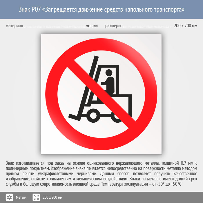 Знак P07 «Запрещается движение средств напольного транспорта» (металл, 200х200 мм) в Кызыле купить