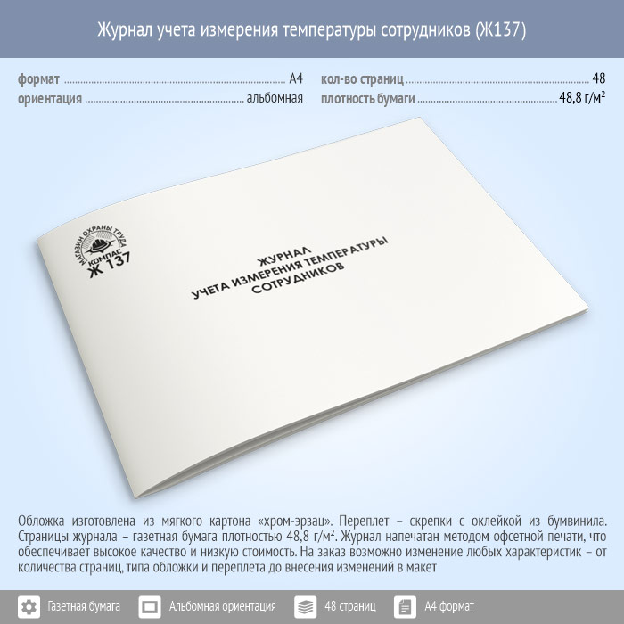 Журнал учета измерения температуры сотрудников (48 стр., Ж137) в Кызыле купить
