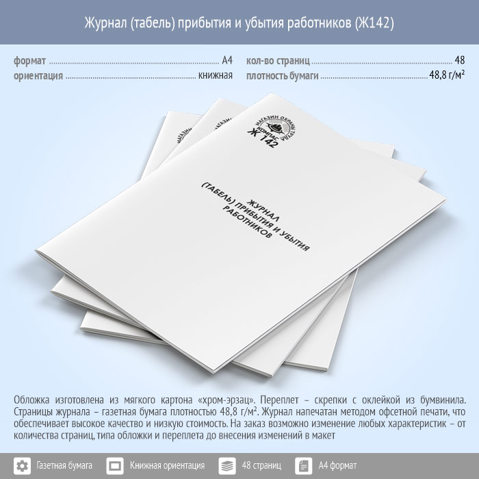 Журнал (табель) прибытия и убытия работников (48 стр., Ж142) в Кызыле купить