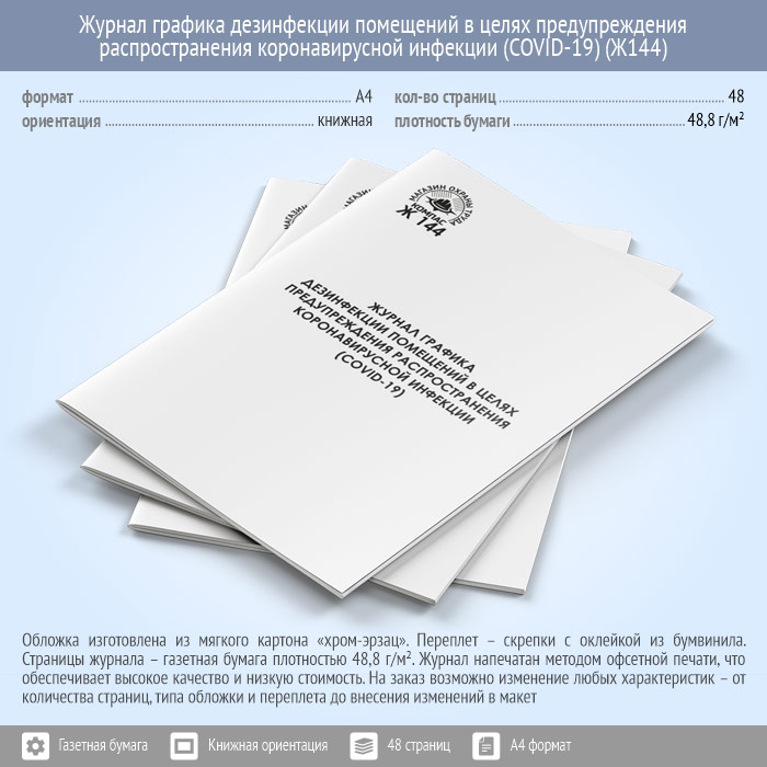 Журнал графика дезинфекции помещений в целях предупреждения распространения коронавирусной инфекции (COVID-19) (48 стр., Ж144) в Кызыле купить