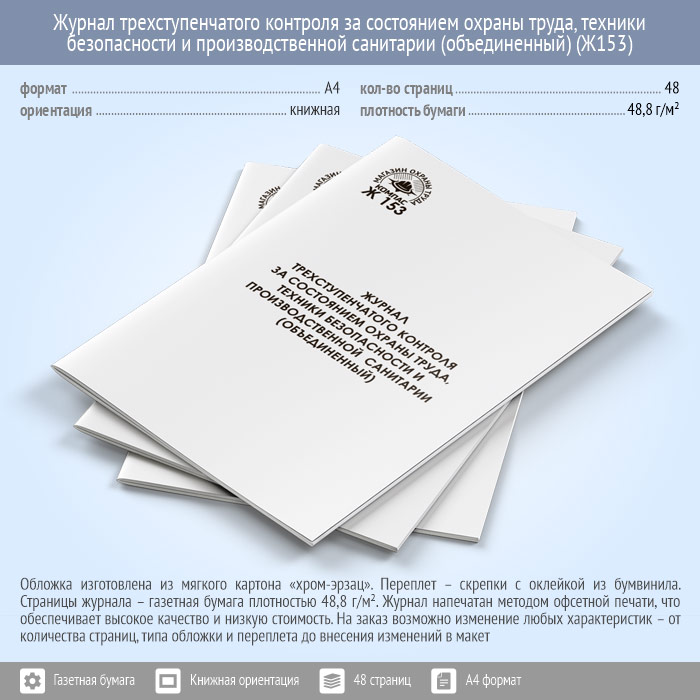 Журнал трехступенчатого контроля за состоянием охраны труда, техники безопасности и производственной санитарии (объединенный) (48 стр., Ж153) в Кызыле купить