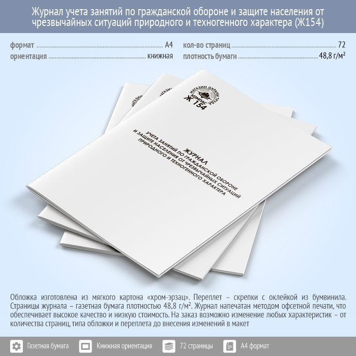 Журнал учета занятий по гражданской обороне и защите населения от чрезвычайных ситуаций природного и техногенного характера (72 стр., Ж154) в Кызыле купить