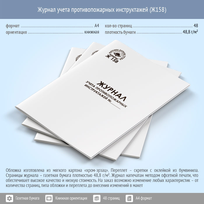 Журнал учета противопожарных инструктажей (48 стр., Ж158) в Кызыле купить