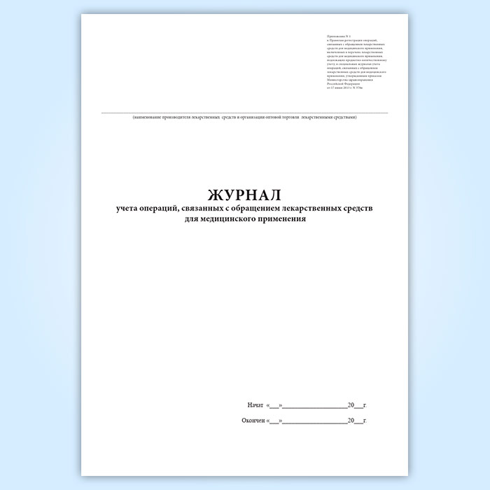 Журнал учета операций, связанных с обращением лекарственных средств для медицинского применения (для производителя лекарственных средств и организации оптовой торговли лекарственными средствами) в Кызыле купить