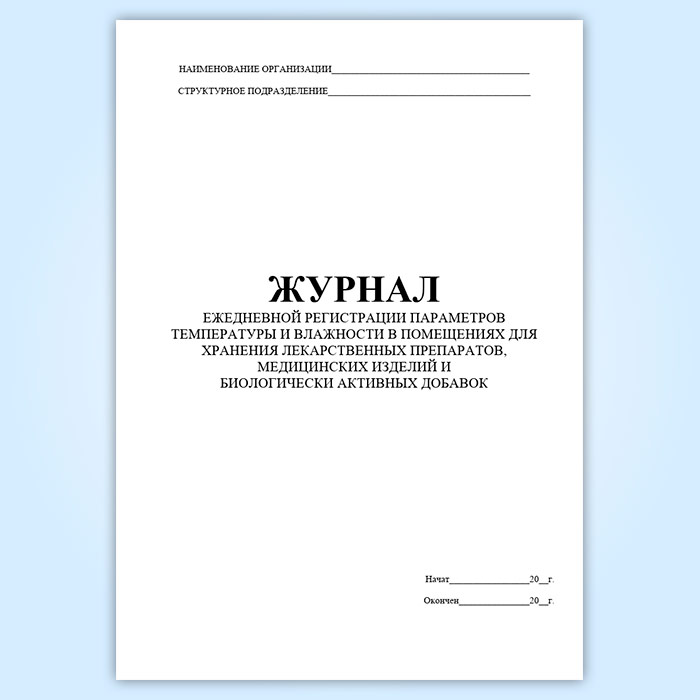 Журнал ежедневной регистрации параметров температуры и влажности в помещениях для хранения лекарственных препаратов, медицинских изделий и биологически активных добавок в Кызыле купить