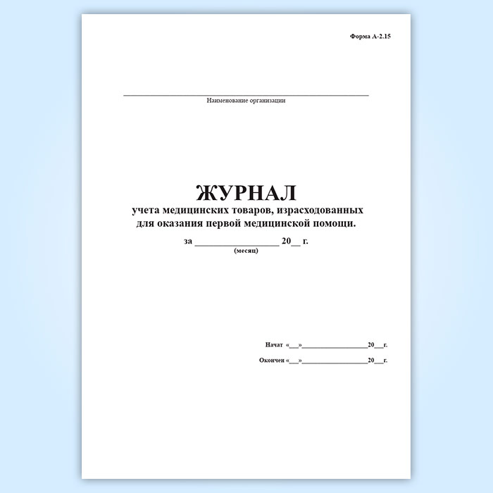 Журнал учета медицинских товаров, израсходованных для оказания первой медицинской помощи (форма А-2.15) в Кызыле купить