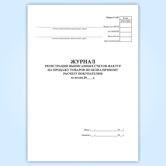 Журнал регистрации выписанных счетов-фактур на продажу товаров по безналичному расчету покупателям (форма 9-АП) в Кызыле купить