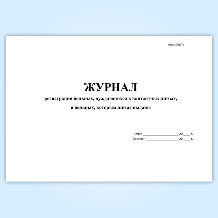 Журнал регистрации больных, нуждающихся в контактных линзах, и больных, которым линзы выданы (форма № 137/у) в Кызыле купить