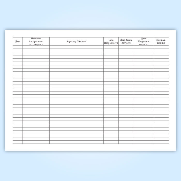 Журнал учета поломки аттракционов и игровых автоматов в Кызыле купить