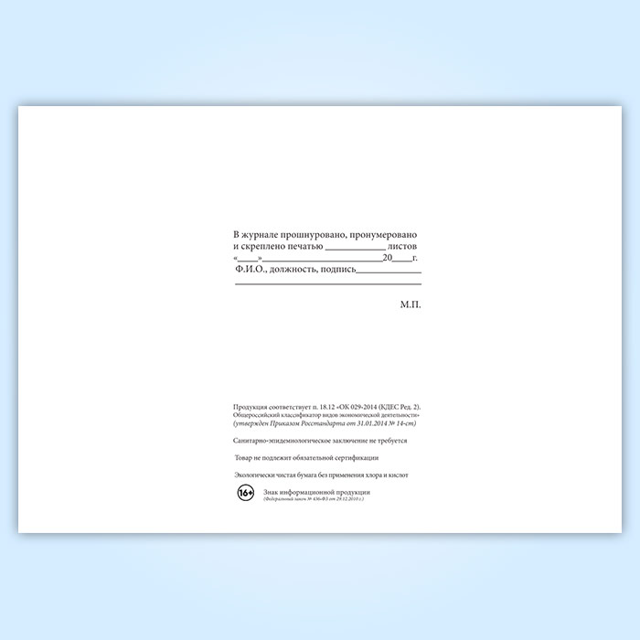 Вы получаете печатную продукцию прошнурованной и c местом для вашей печати в соответствии с действующими нормативными документами: