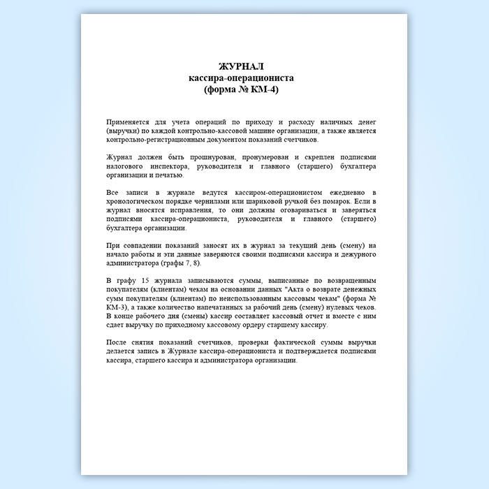 Журнал кассира-операциониста, вертикальный (форма № КМ-4) в Кызыле купить
