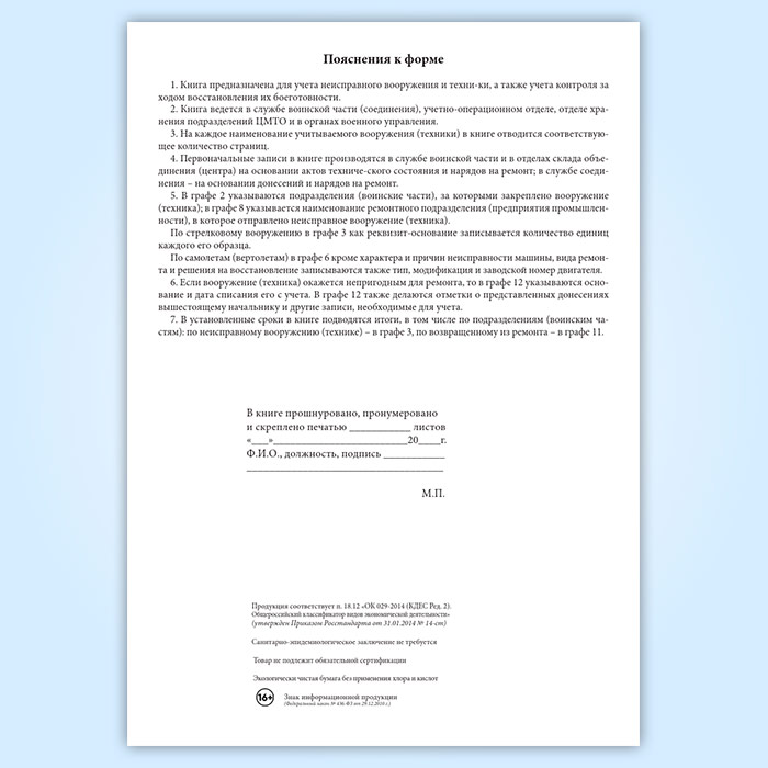 Книга учета неисправного вооружения и военной техники (форма 19) в Кызыле купить