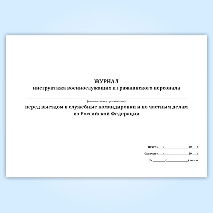 Журнал инструктажа военнослужащих и гражданского персонала перед выездом в служебные командировки и по частным делам из Российской Федерации в Кызыле купить