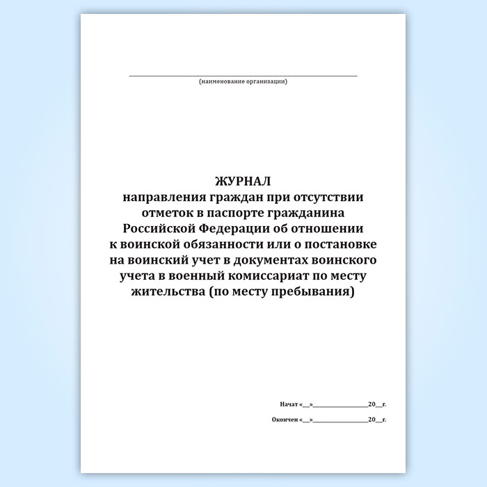 Журнал направления граждан при отсутствии отметок в паспорте гражданина Российской Федерации об отношении к воинской обязанности или о постановке на воинский учет в документах воинского учета в военный комиссариат по месту жительства (по месту пребывания) в Кызыле купить