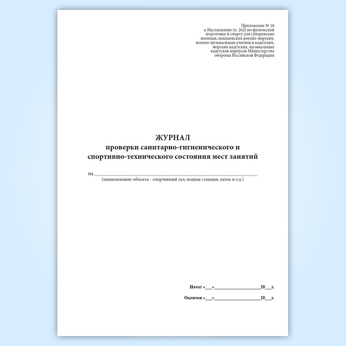 Журнал проверки санитарно-гигиенического и спортивно-технического состояния мест занятий в Кызыле купить
