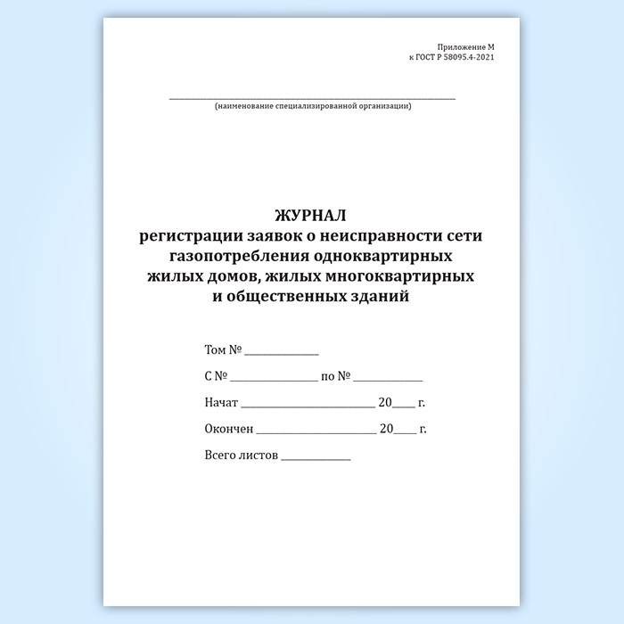 Журнал регистрации заявок о неисправности сети газопотребления одноквартирных жилых домов, жилых многоквартирных и общественных зданий в Кызыле купить