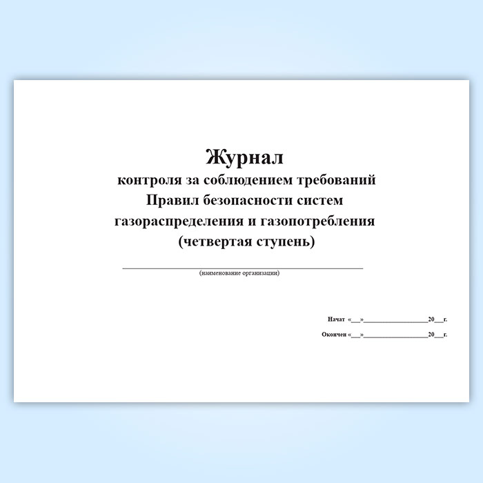 Журнал контроля за соблюдением требований Правил безопасности систем газораспределения и газопотребления (четвертая ступень) в Кызыле купить
