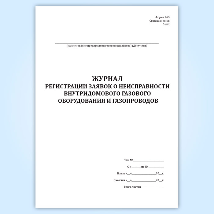 Журнал регистрации заявок о неисправности внутридомового газового оборудования и газопроводов (форма 26-Э) в Кызыле купить
