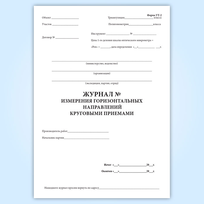 Журнал измерения горизонтальных направлений круговыми приемами (форма УТ-2) в Кызыле купить