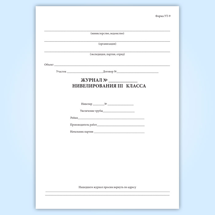 Журнал нивелирования III класса (форма УТ-9) в Кызыле купить